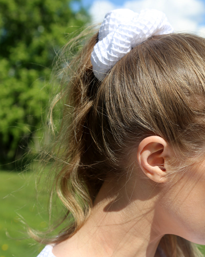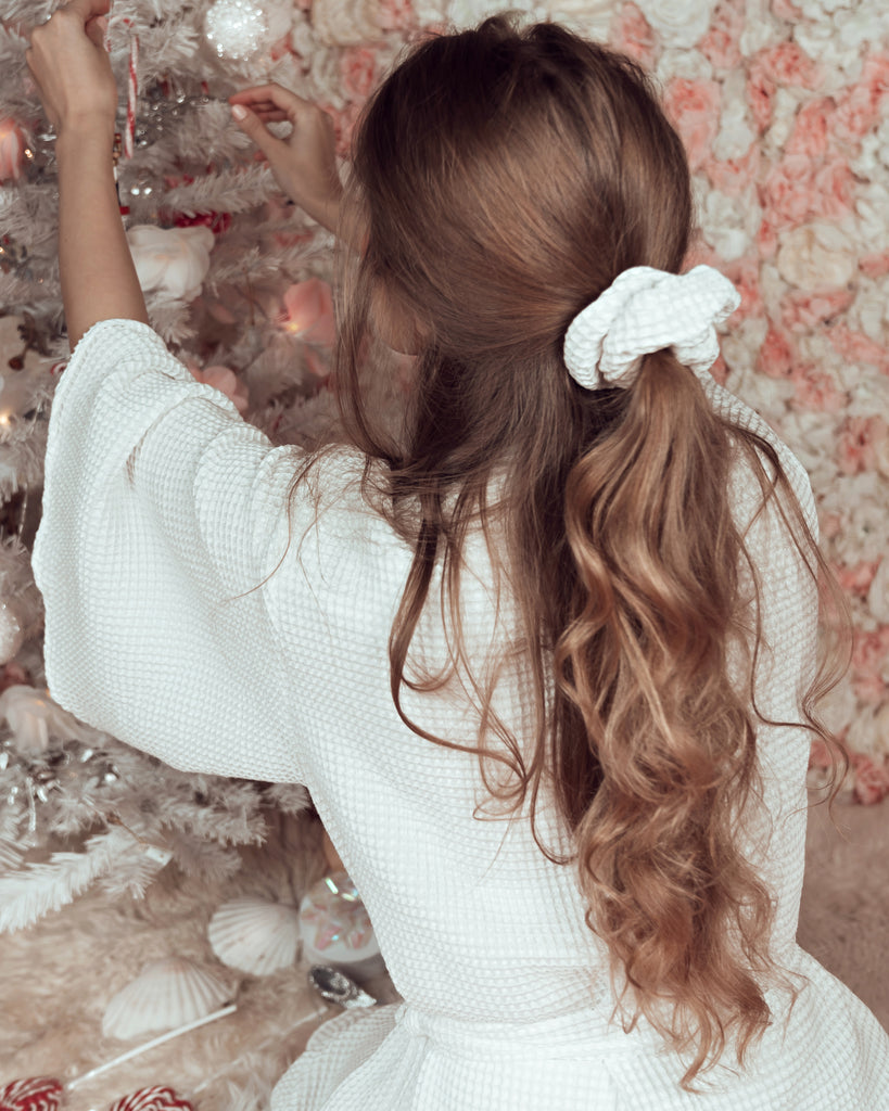 How to have a good hair day? Wrap your waffle textured Chill Scrunchie around your high or low ponytail or a large bun.